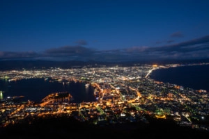 Mount Moiwa or Moiwa-yama (藻岩山) is one of several small, forested mountains southwest of Sapporo. The mountain is known for the spectacular view of the city from an observation deck at its summit. From here one can view a spectacular panorama of the streets of Sapporo, Ishikari Bay and the Shokanbetsu Peak.